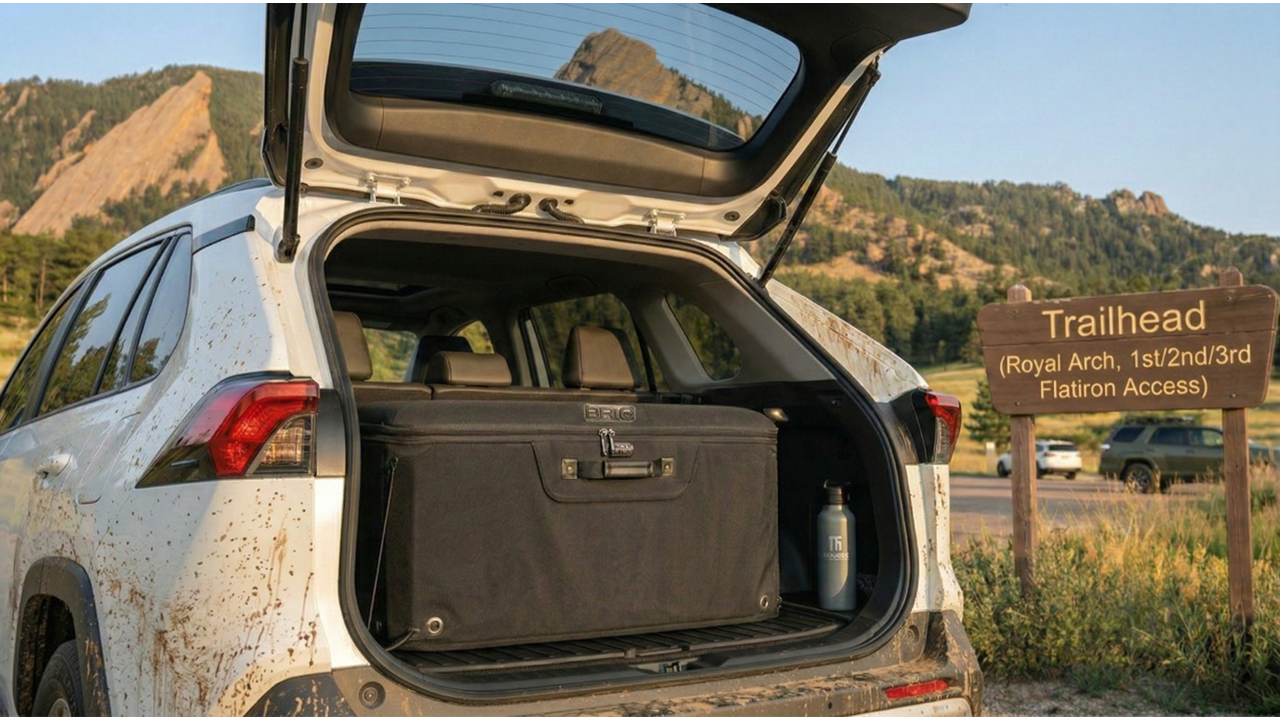 Designed to integrate seamlessly into a vehicle’s cargo area, BRIG is a collapsible, lockable cargo case that anchors directly to the vehicle. It expands when secure storage is needed, collapses when it is not, and is built to deter smash-and-grab theft by increasing the time, effort, and risk required to access what is inside.